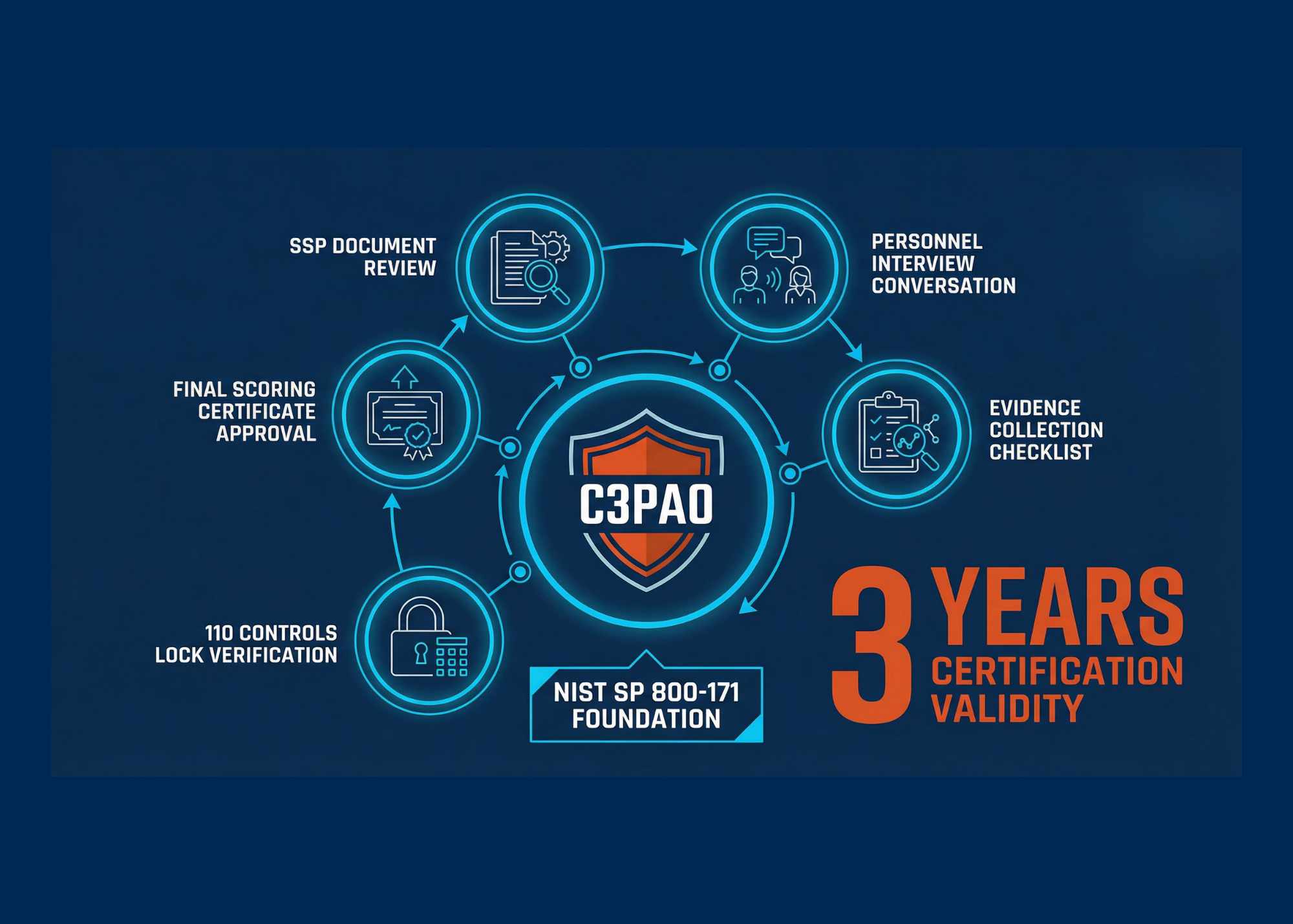 A C3PAO conducts a formal evaluation of your organization’s cybersecurity practices to determine if you meet the requirements of NIST SP 800-171, which forms the foundation of CMMC Level 2.